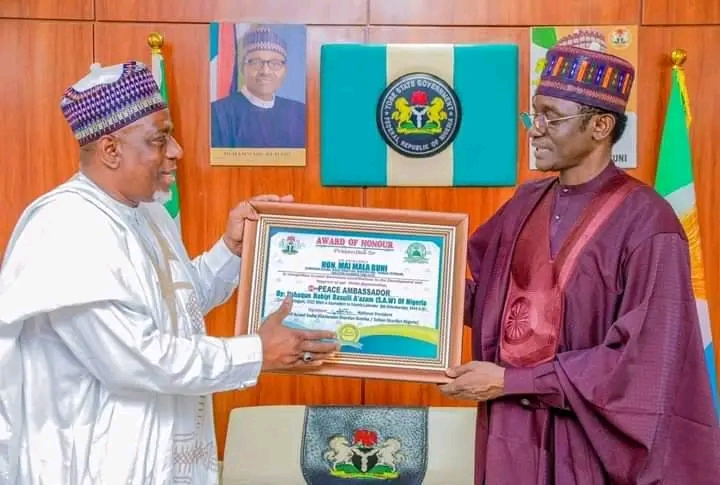 Kungiyar masu yabon Manzo Allah (SAW) na kasa, sun baiwa Gwamnan Jihar Yobe, Hon. Mai Mala Buni, lambar yabo kan kokari da hidima da yakewa addinin musulunci.
