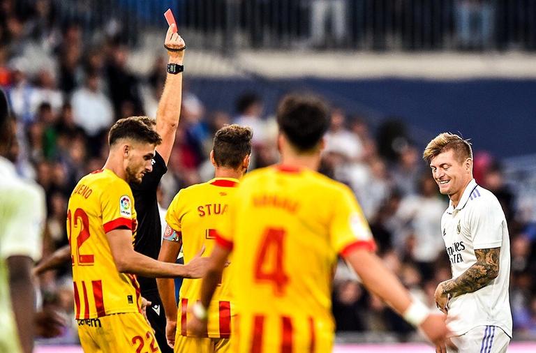 Kroos ya karbi jan katin yayin da Real Madrid ta raba maki da Girona, bayan da suka tashi 1-1 a wasan mako na 12 a gasar La Liga da suka fafata a Santiago Bernabeu ranar Lahadi.