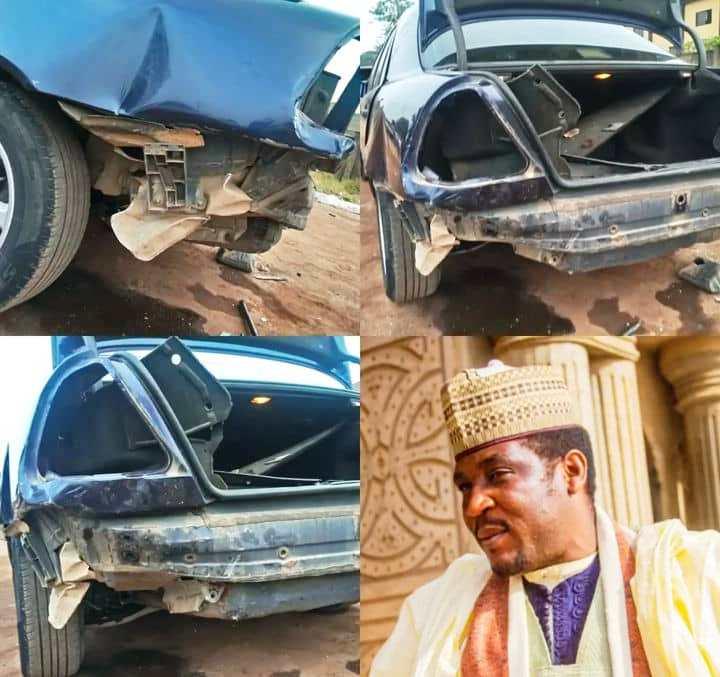 Ala ya wallafa hotunan yadda motarsu ta kwararrabe sakamakon hatsarin.
