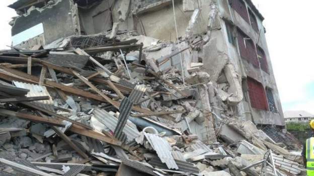 Bbc ta rawaito cewa  faduwar ginin mai hawa biyu ya yi sanadin mutuwar leburori uku da ke aikin ginin.