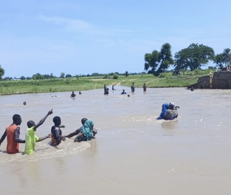 Ziyarar da wakilinmu ya kai garin ya nuna yadda matasa suke dauku mata da yara kanana a kafadarsu domin ketare kogin da ya malala don gudanar da harkokinsu na yau da kullum.