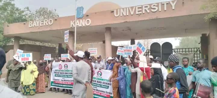 Ƙungiyar manyan ma’aikatan Jami’oin Najeriya, SSANU da kuma ta ma’aikatan jami’a da basa koyarwa, NASU reshen jami’ar Bayero da ke Kano sun rufe Ƙofar shiga jami’ar a yajin aikin gargaɗi na kwana bakwai da suka soma.